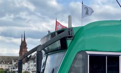 Wir putzen unsere Fahrzeuge für die Bundesfeier heraus. Anlässlich des Schweizer Nationalfeiertags sind unsere Trams und Busse mit einem Schweizer und einem Basler Fähnlein geschmückt.